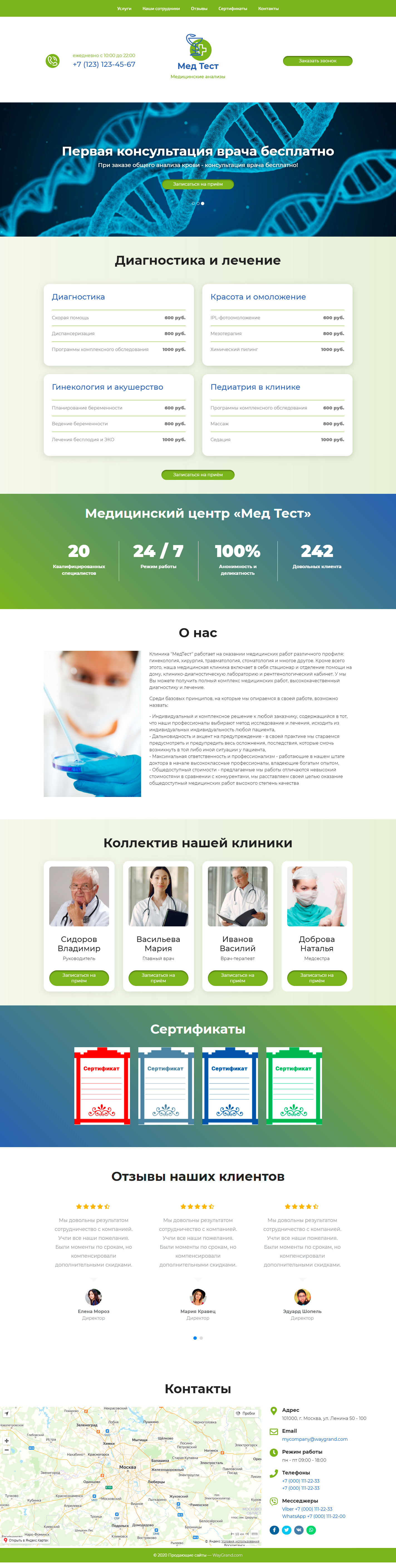 Закажите готовый продающий сайт лендинг #1025201 в Иркутске за 1-3 дня «под ключ»: свёрстан, отрисован и готов к рекламе. Тематика шаблона «Медицинские анализы».