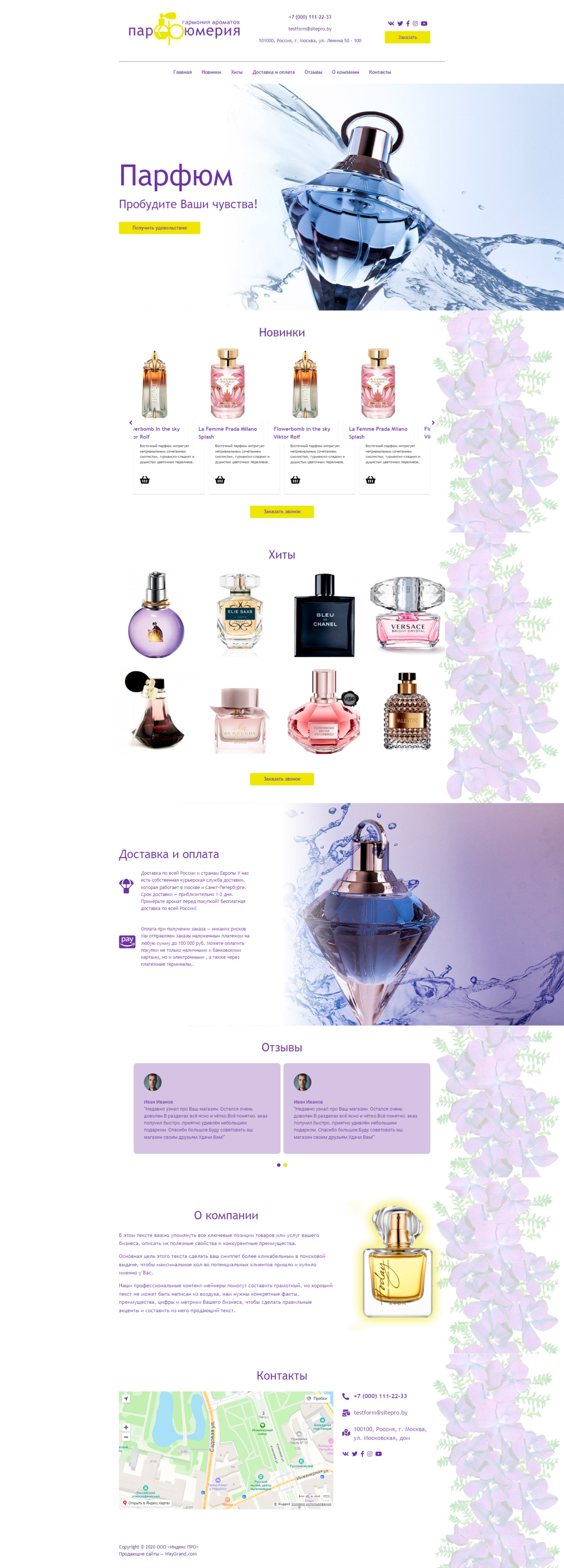 Закажите готовый продающий сайт лендинг #1030202 в Иркутске за 1-3 дня «под ключ»: свёрстан, отрисован и готов к рекламе. Тематика шаблона «Парфюмерия».