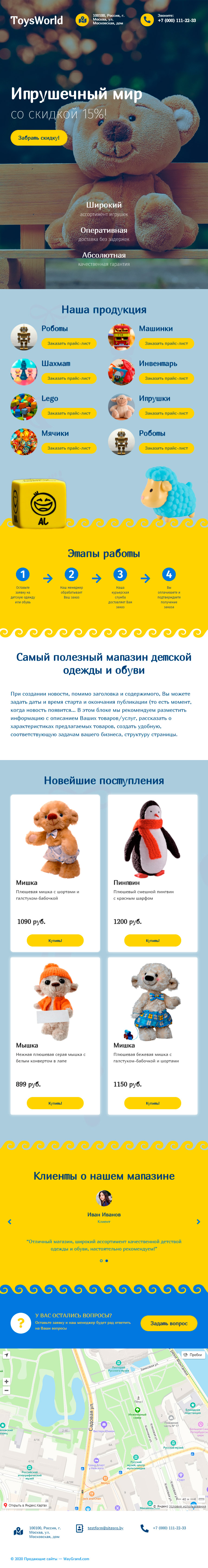 Закажите готовый продающий сайт лендинг #1509201 в Иркутске за 1-3 дня «под ключ»: свёрстан, отрисован и готов к рекламе. Тематика шаблона «Игрушечный мир».