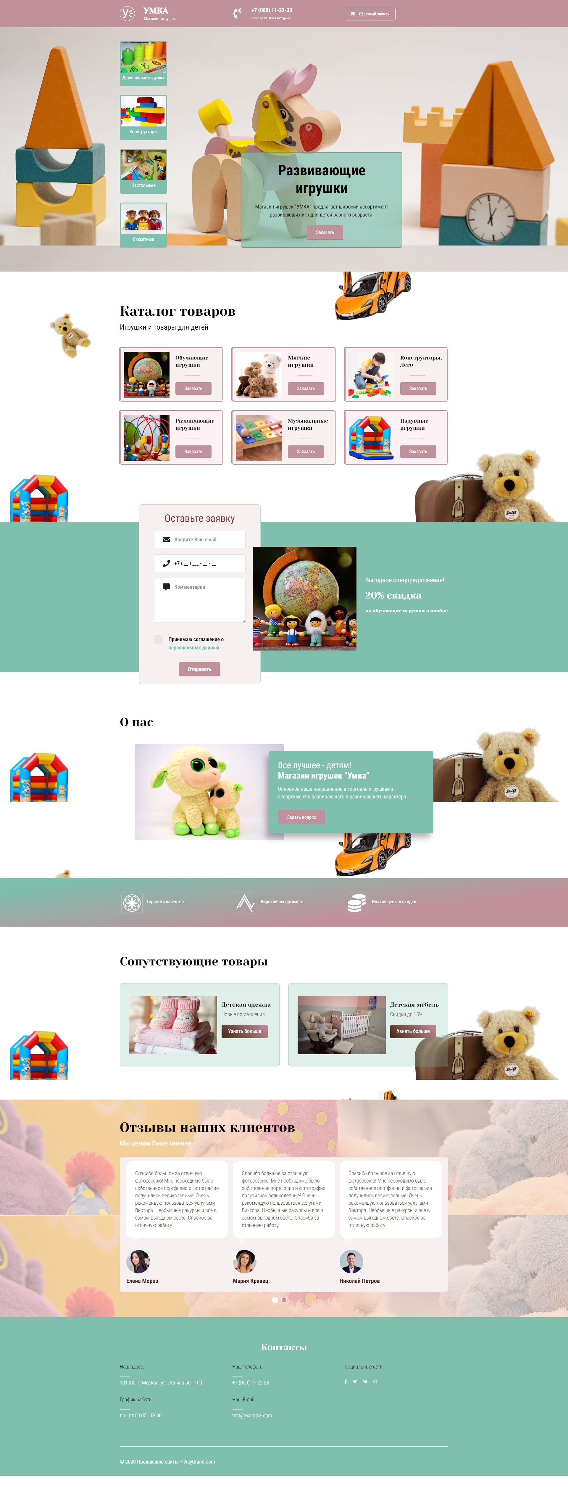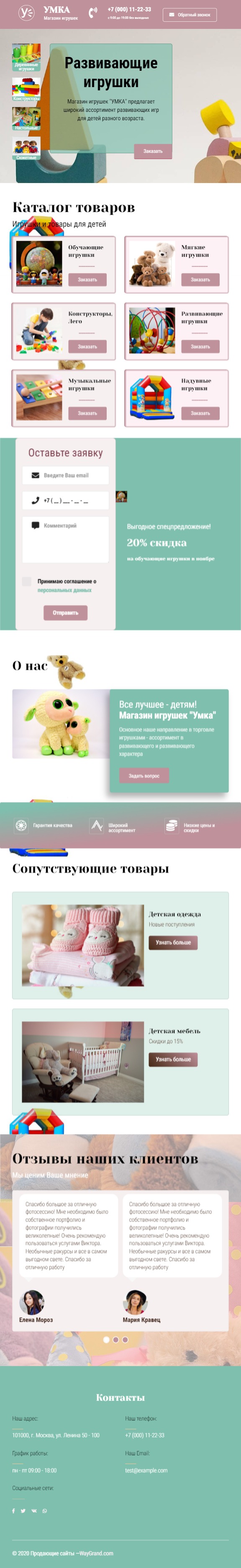 Закажите готовый продающий сайт лендинг #2442201 в Иркутске за 1-3 дня «под ключ»: свёрстан, отрисован и готов к рекламе. Тематика шаблона «Магазин игрушек».