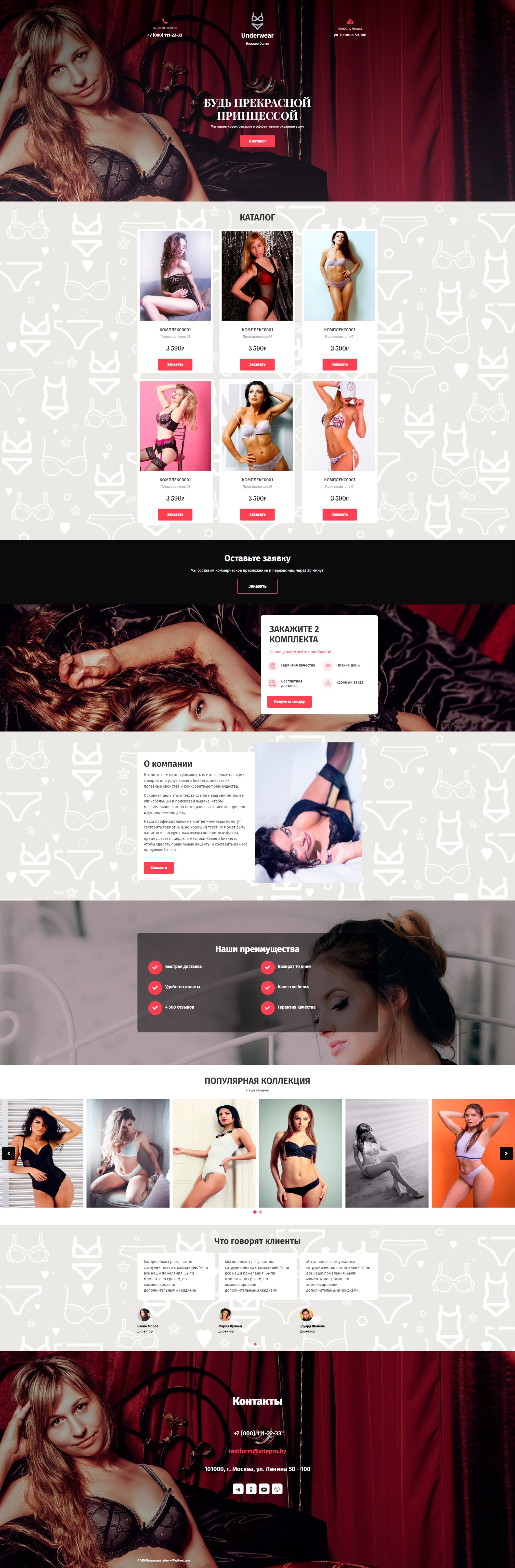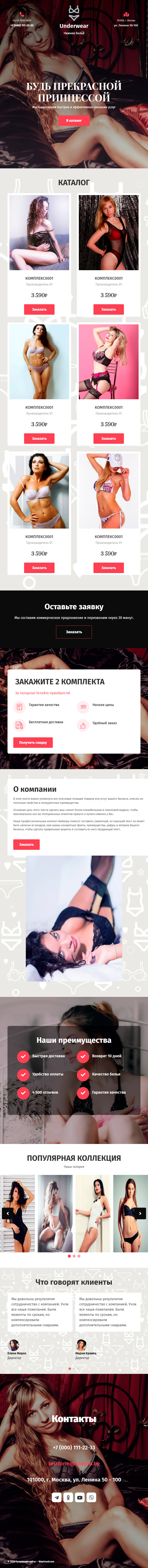 Закажите готовый продающий сайт лендинг #1514201 в Иркутске за 1-3 дня «под ключ»: свёрстан, отрисован и готов к рекламе. Тематика шаблона «Нижнее белье».