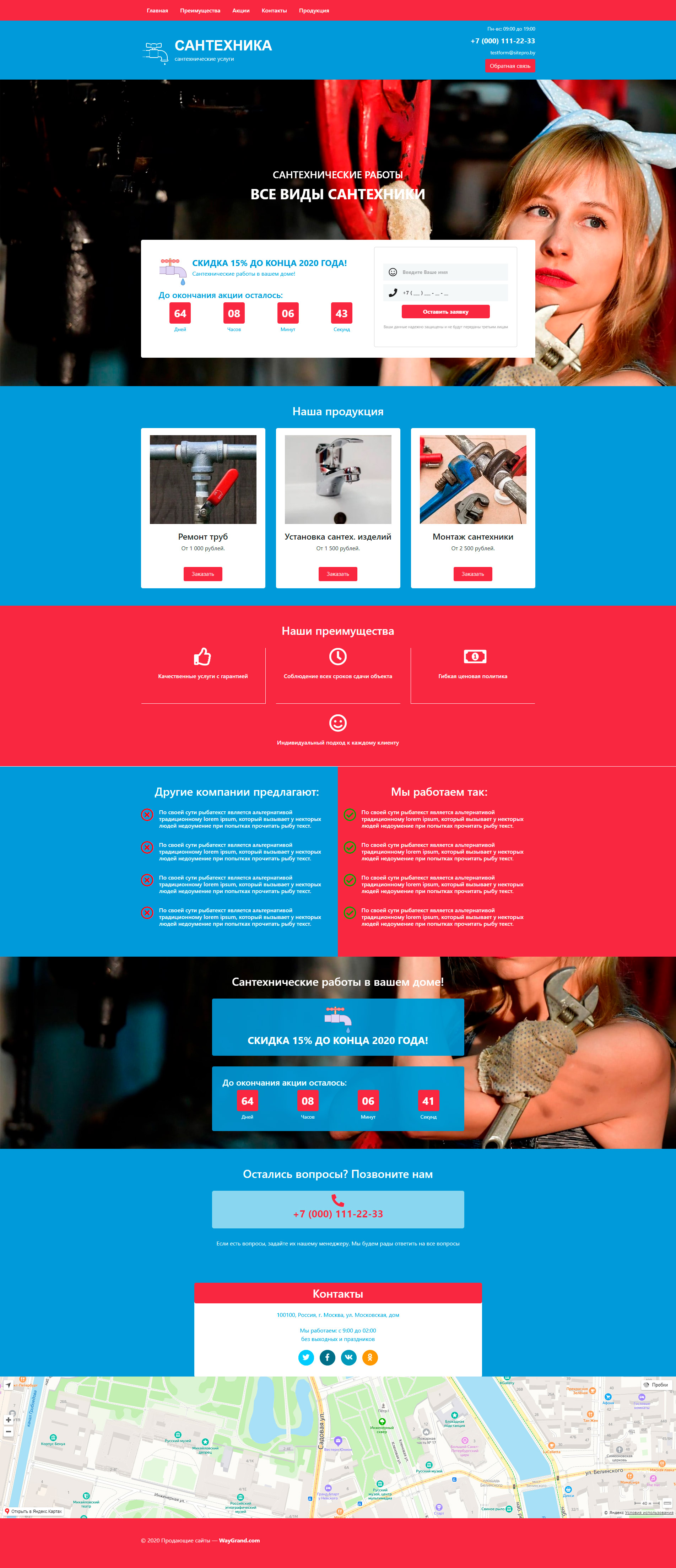 Закажите готовый продающий сайт лендинг #2158202 в Иркутске за 1-3 дня «под ключ»: свёрстан, отрисован и готов к рекламе. Тематика шаблона «Сантехника».