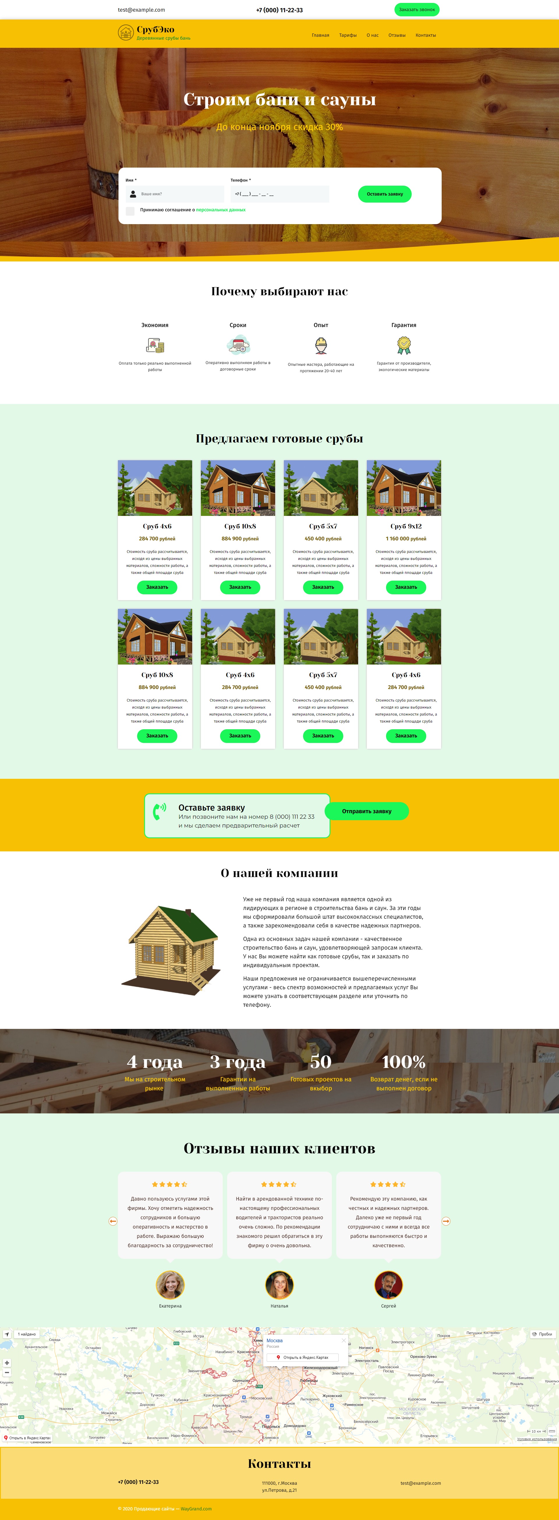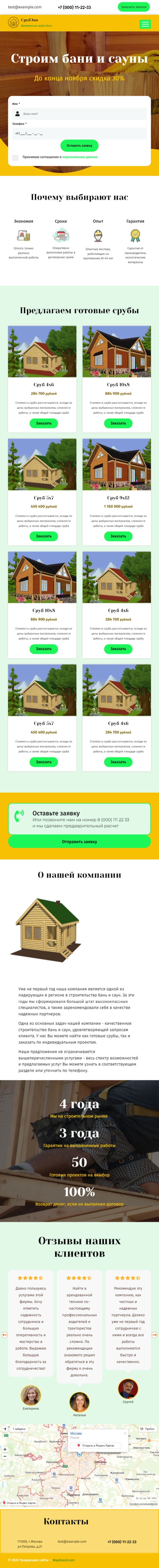 Закажите готовый продающий сайт лендинг #2172202 в Иркутске за 1-3 дня «под ключ»: свёрстан, отрисован и готов к рекламе. Тематика шаблона «Строительство бань и саун».