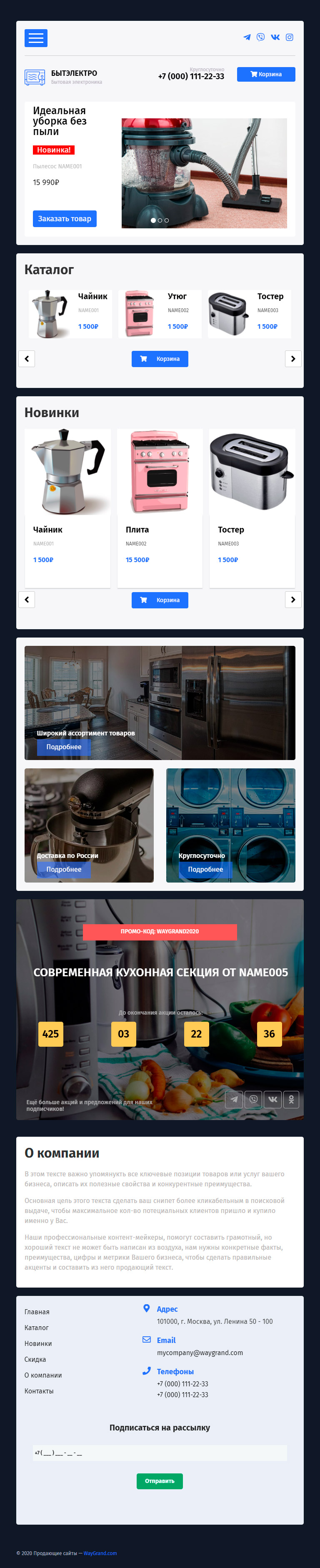 Закажите готовый продающий сайт лендинг #0703202 в Иркутске за 1-3 дня «под ключ»: свёрстан, отрисован и готов к рекламе. Тематика шаблона «Продажа бытовой электроники».