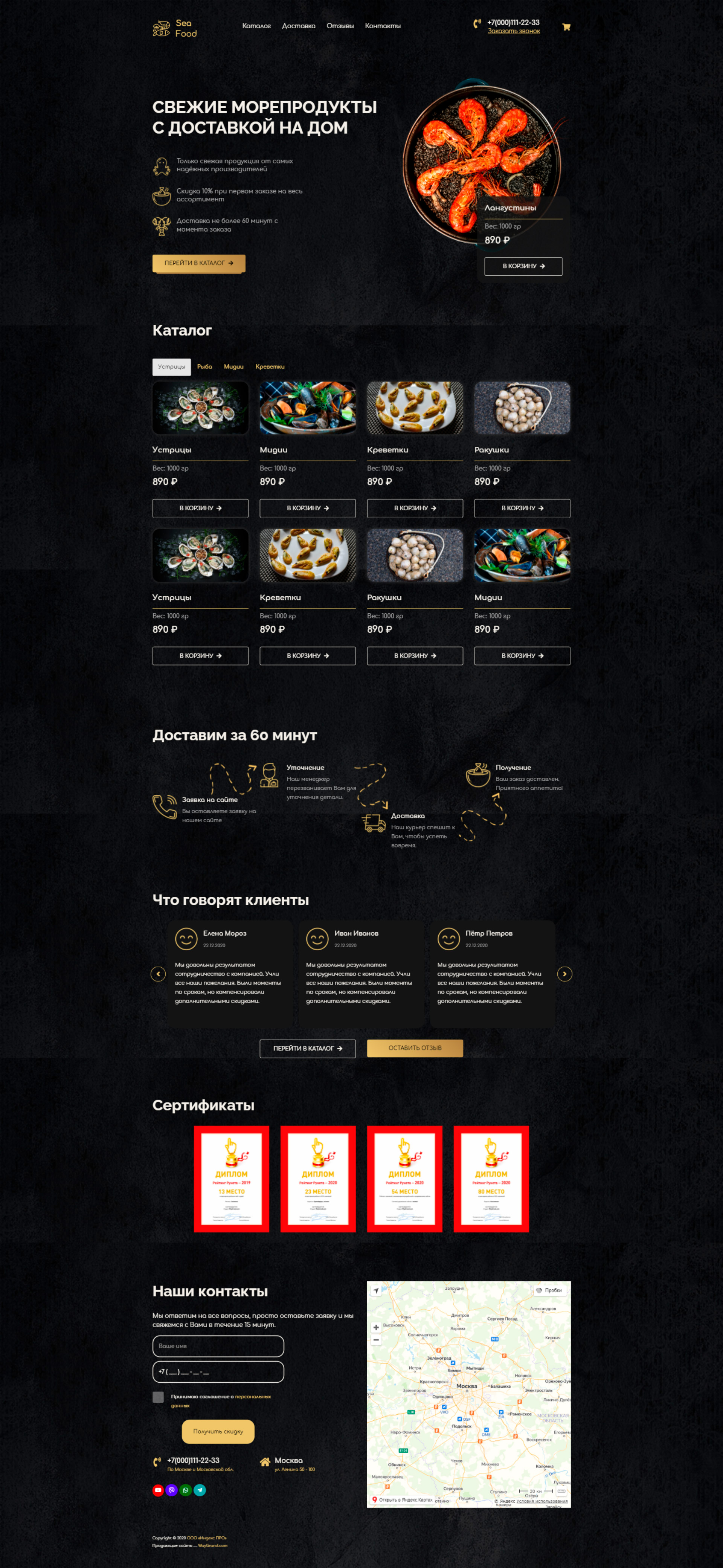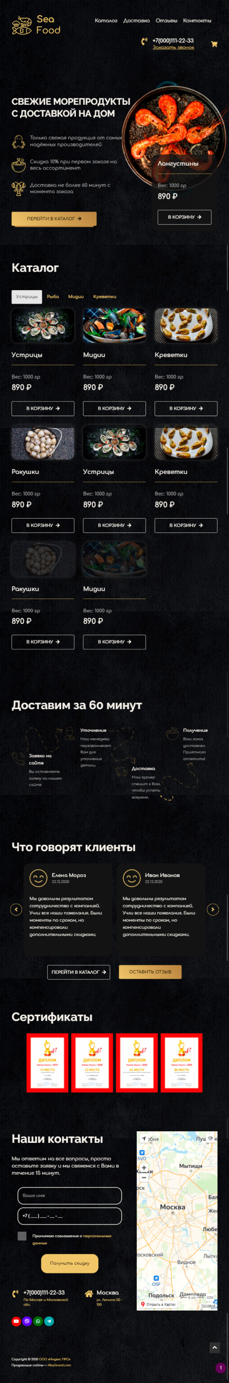 Закажите готовый продающий сайт лендинг #0422205 в Иркутске за 1-3 дня «под ключ»: свёрстан, отрисован и готов к рекламе. Тематика шаблона «Доставка морепродуктов на дом».