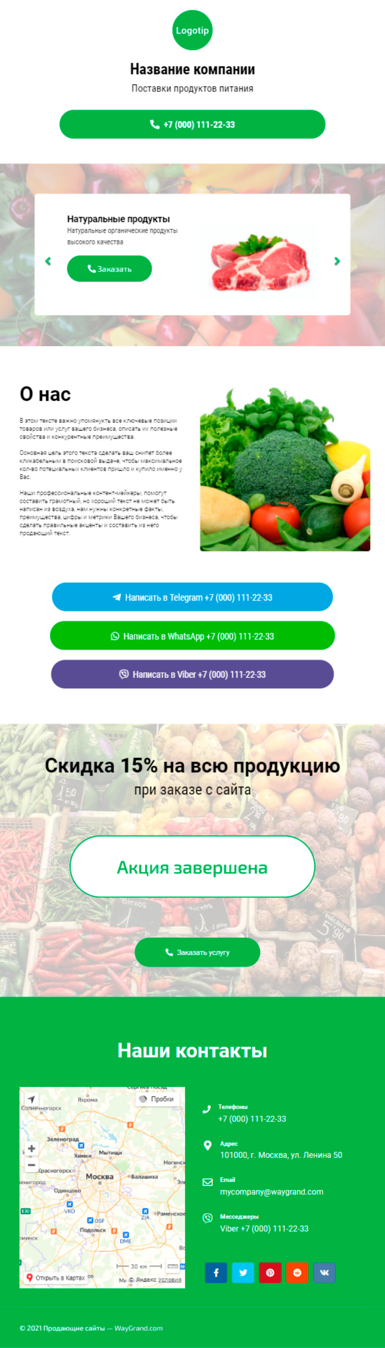 - Блок "Скидка 15% на всю продукцию"