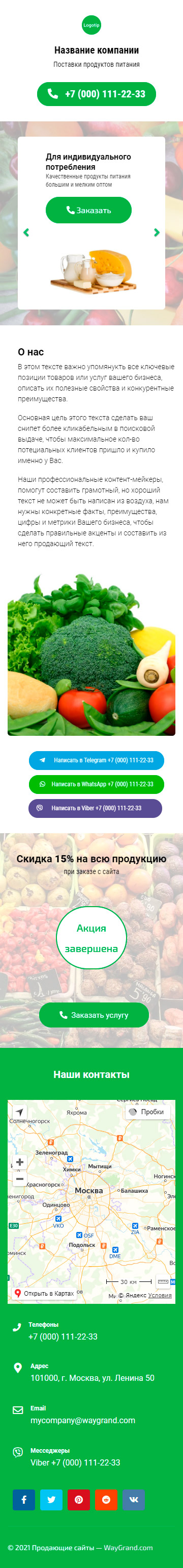 Закажите готовый продающий сайт визитка #1723101 в Иркутске за 5-7 дня «под ключ»: свёрстан, отрисован и готов к рекламе. Тематика шаблона «Поставки продуктов питания».