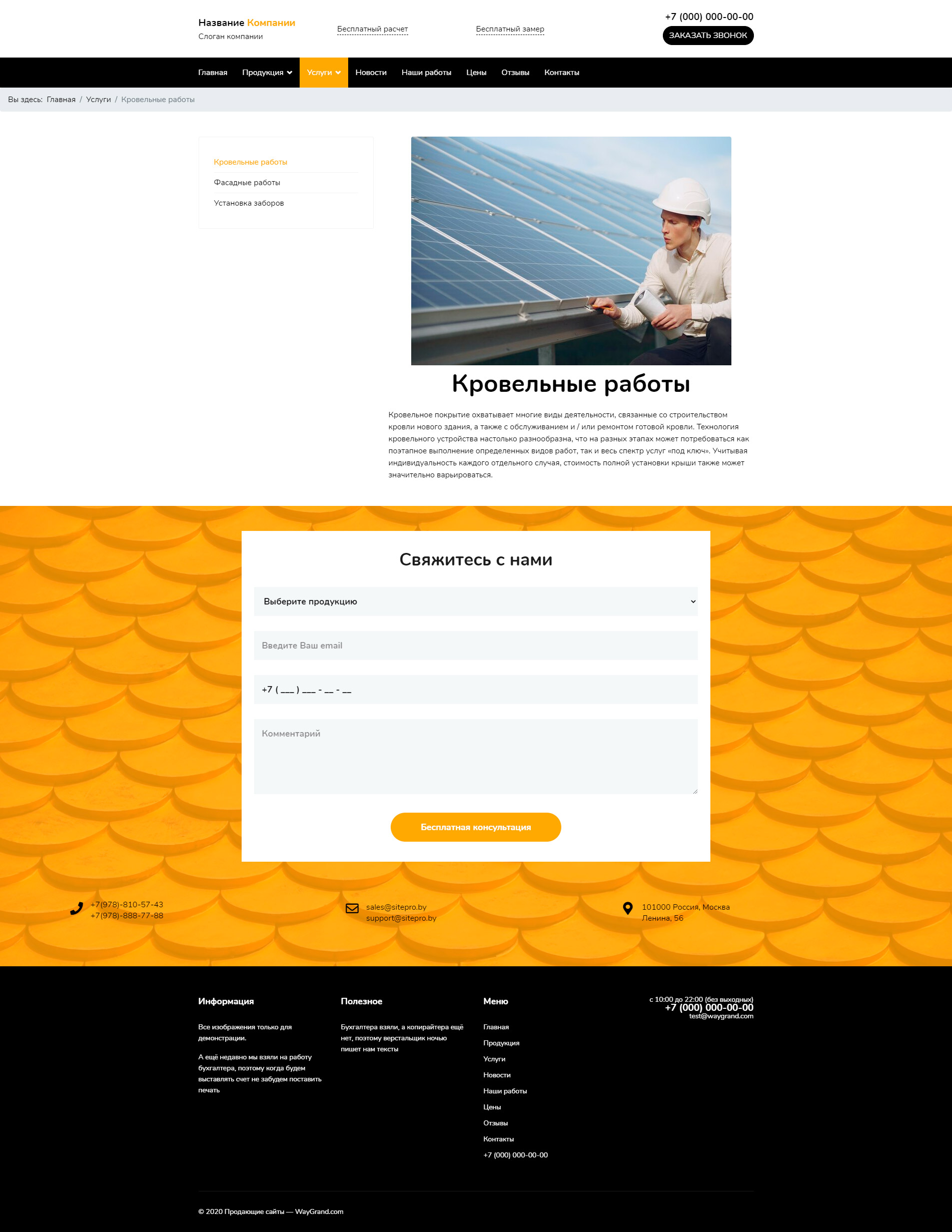 Закажите готовый продающий сайт визитка #2132301 в Иркутске за 5-7 дня «под ключ»: свёрстан, отрисован и готов к рекламе. Тематика шаблона «Заборы, кровля, фасады».