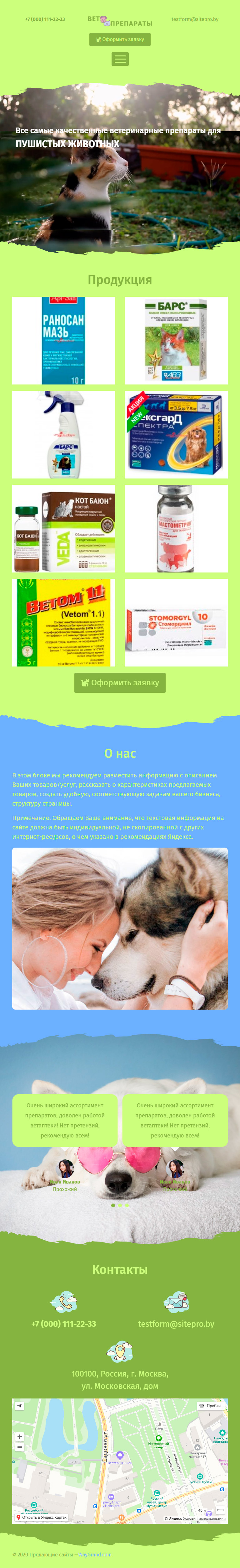 Закажите готовый продающий сайт лендинг #2305202 в Иркутске за 1-3 дня «под ключ»: свёрстан, отрисован и готов к рекламе. Тематика шаблона «Ветпрепараты».