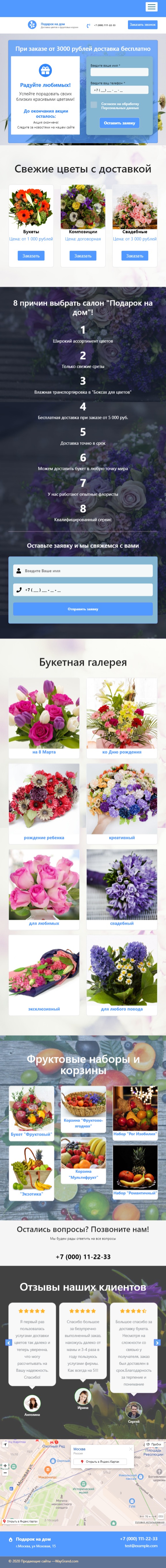 Закажите готовый продающий сайт лендинг #2404203 в Иркутске за 1-3 дня «под ключ»: свёрстан, отрисован и готов к рекламе. Тематика шаблона «Доставка букетов на дом».