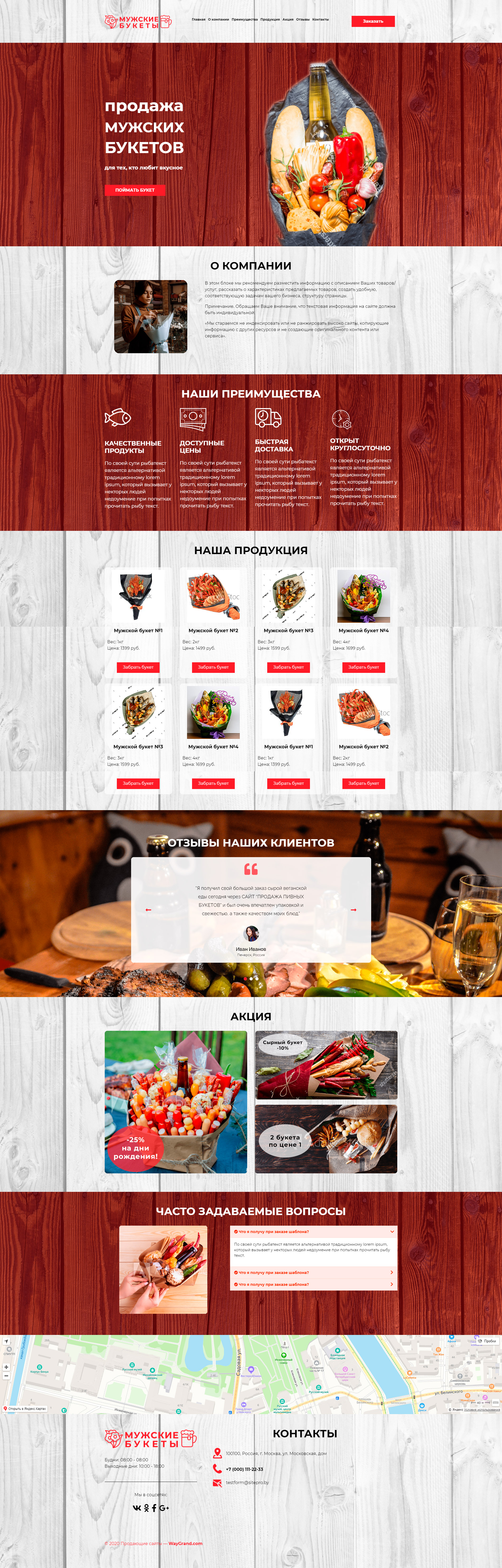 Закажите готовый продающий сайт лендинг #2404204 в Иркутске за 1-3 дня «под ключ»: свёрстан, отрисован и готов к рекламе. Тематика шаблона «Мужские букеты».