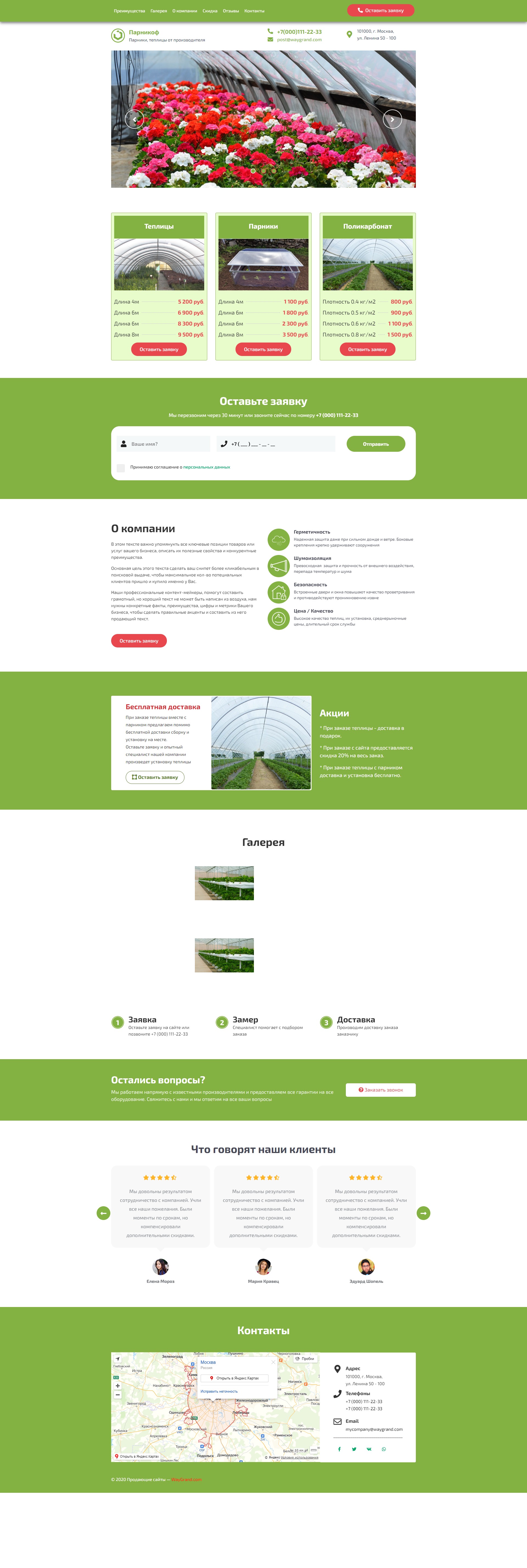 Закажите готовый продающий сайт лендинг #2624202 в Иркутске за 1-3 дня «под ключ»: свёрстан, отрисован и готов к рекламе. Тематика шаблона «Парники и теплицы».