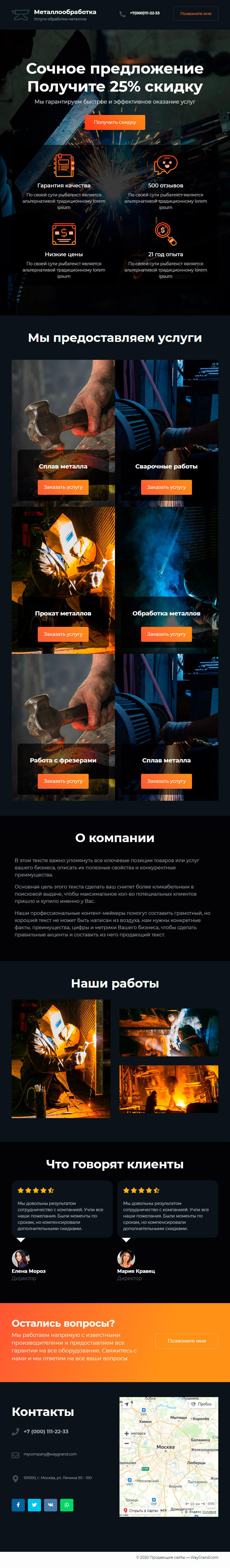 Закажите готовый продающий сайт лендинг #1209201 в Иркутске за 1-3 дня «под ключ»: свёрстан, отрисован и готов к рекламе. Тематика шаблона «Металлообработка».