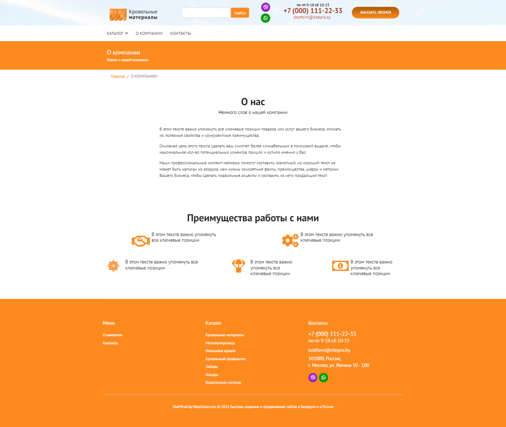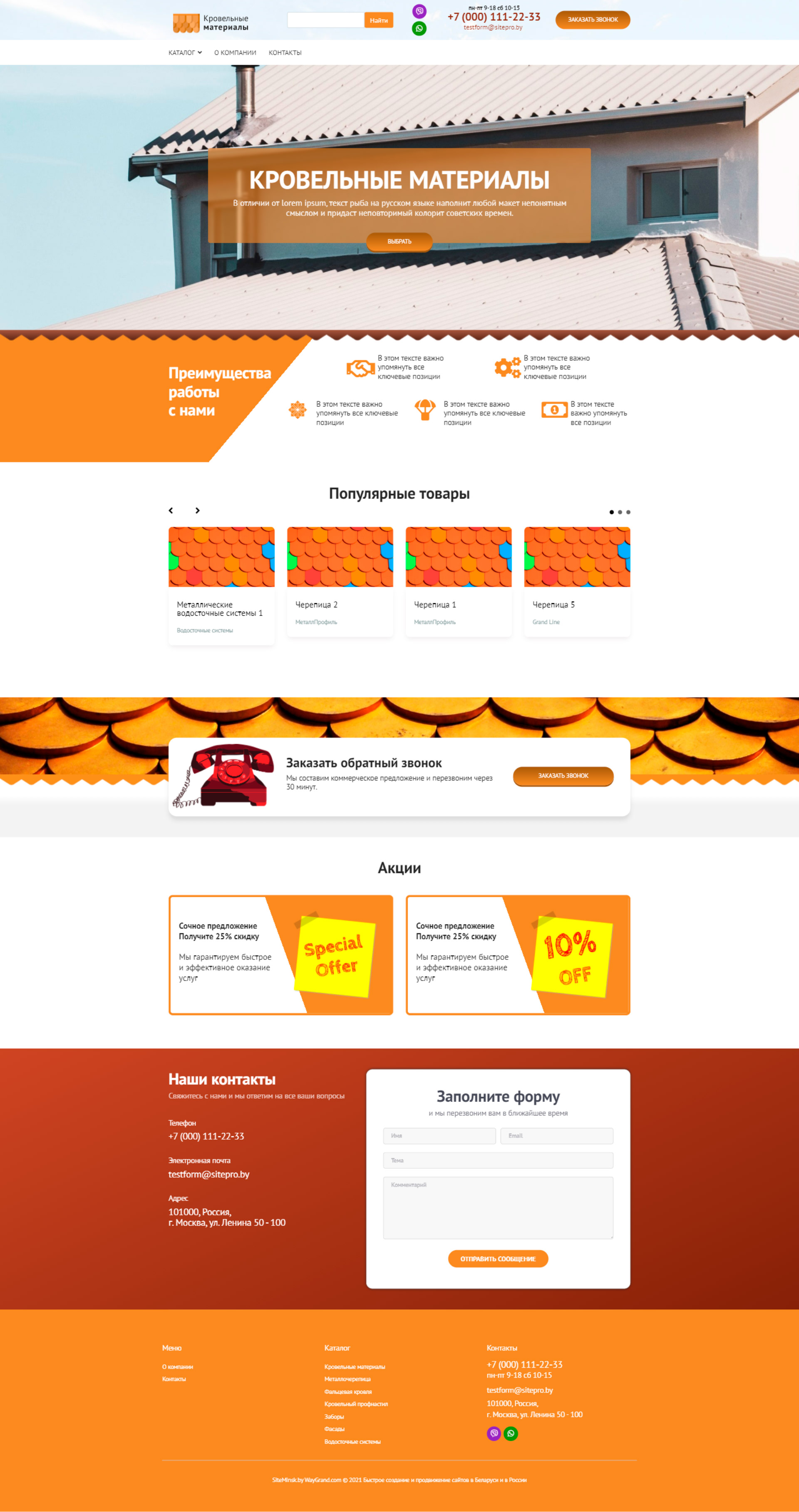 Закажите готовый продающий сайт визитка #2023402 в Иркутске за 5-7 дня «под ключ»: свёрстан, отрисован и готов к рекламе. Тематика шаблона «Кровельные материалы».