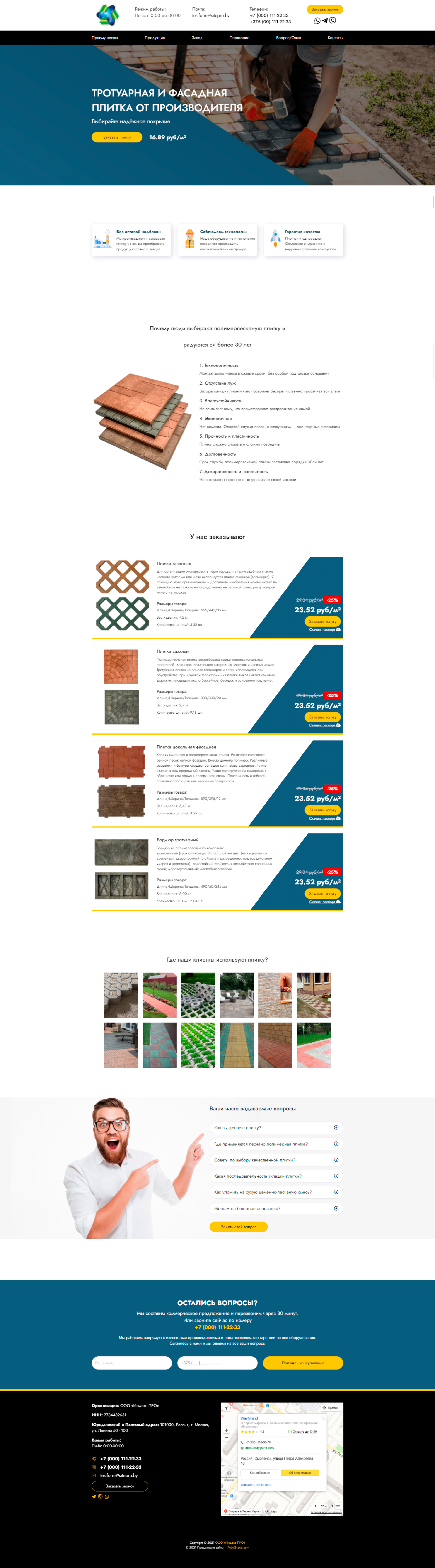 Закажите готовый продающий сайт лендинг #2055202 в Иркутске за 1-3 дня «под ключ»: свёрстан, отрисован и готов к рекламе. Тематика шаблона «Тротуарная плитка».
