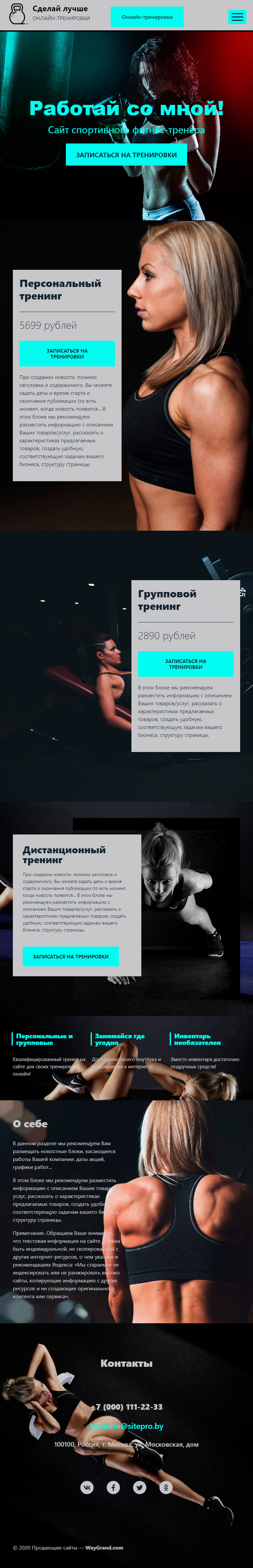 Закажите готовый продающий сайт лендинг #1955203 в Иркутске за 1-3 дня «под ключ»: свёрстан, отрисован и готов к рекламе. Тематика шаблона «Фитнес тренер».