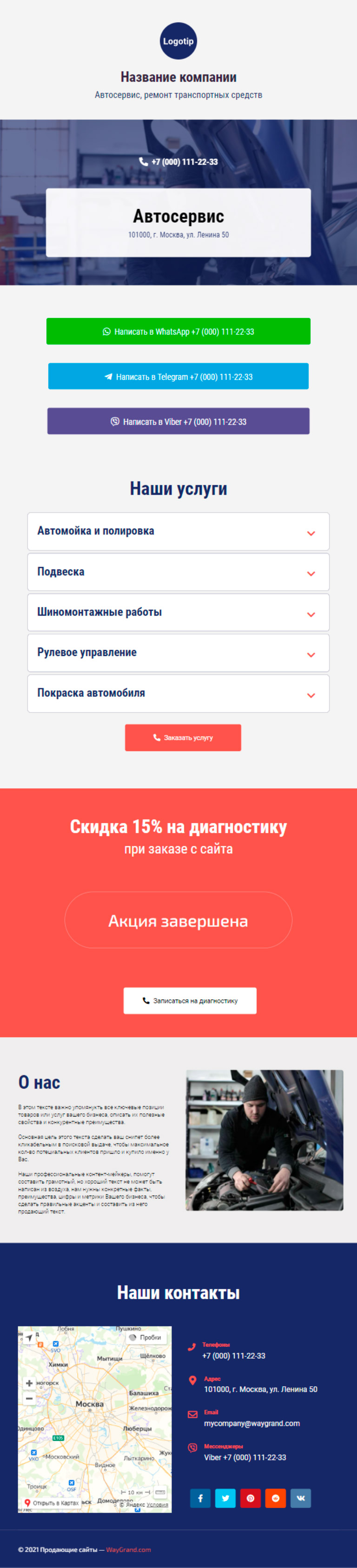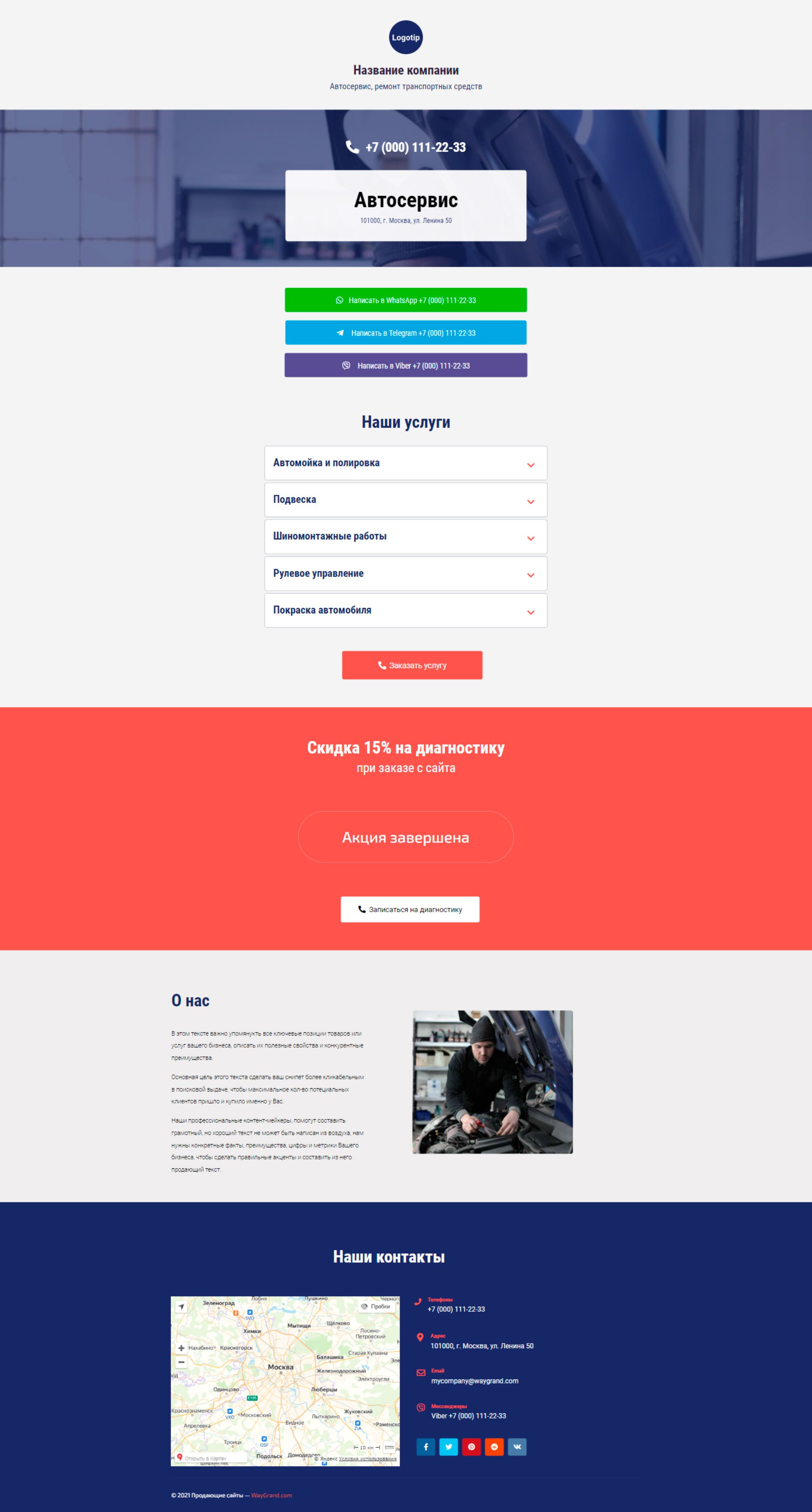 Закажите готовый продающий сайт визитка #0210101 в Иркутске за 5-7 дня «под ключ»: свёрстан, отрисован и готов к рекламе. Тематика шаблона «Автосервис, ремонт транспортных средств».