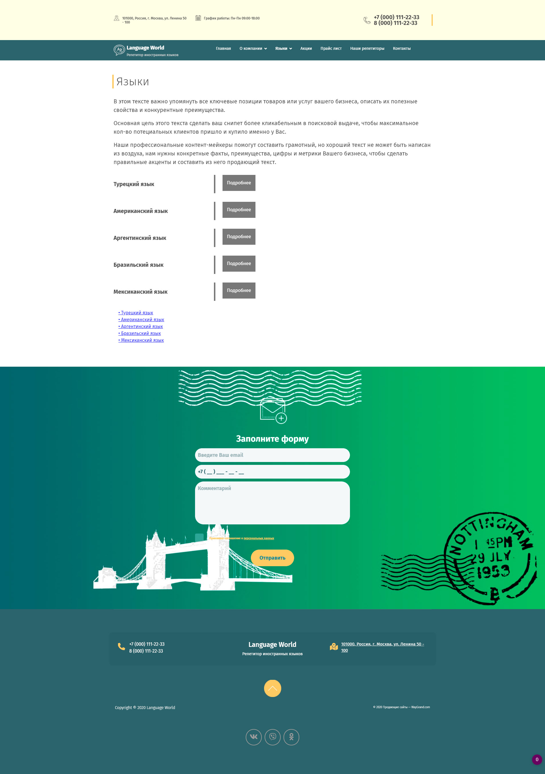 - Промогалерея "Репетиторы иностранных языков" с кнопкой призыва к действию "Записаться"