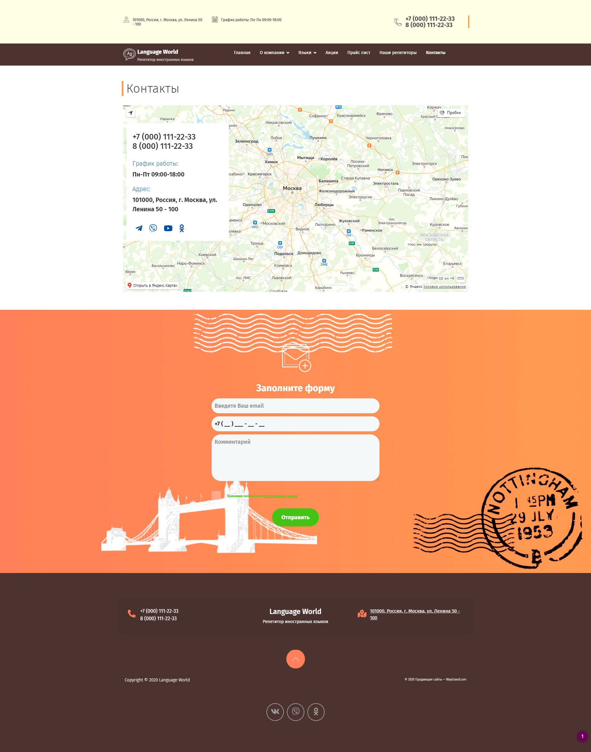 Закажите готовый продающий сайт визитка #1448303 в Иркутске за 5-7 дня «под ключ»: свёрстан, отрисован и готов к рекламе. Тематика шаблона «Курсы иностранных языков».