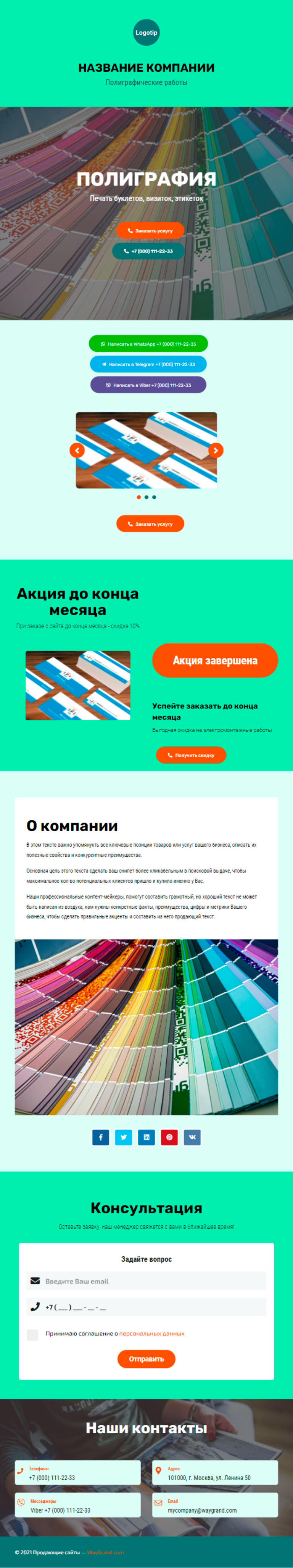 Закажите готовый продающий сайт визитка #1826101 в Иркутске за 5-7 дня «под ключ»: свёрстан, отрисован и готов к рекламе. Тематика шаблона «Полиграфия».