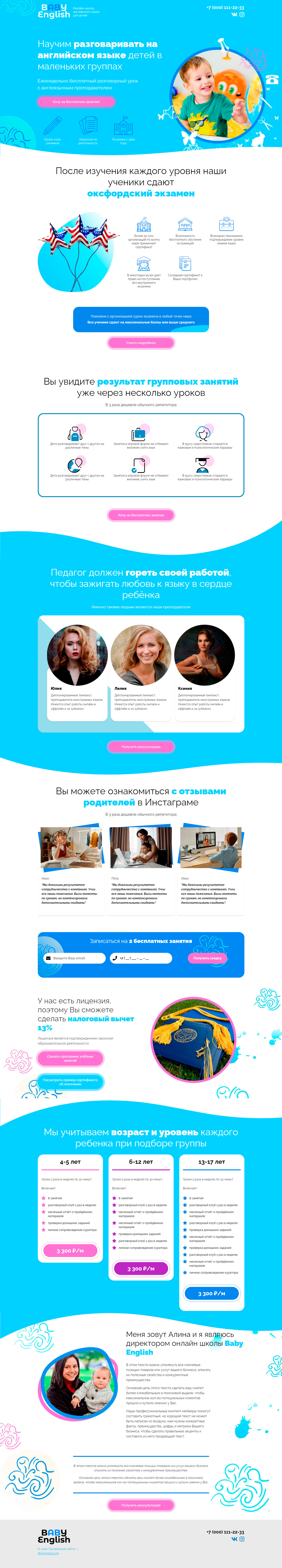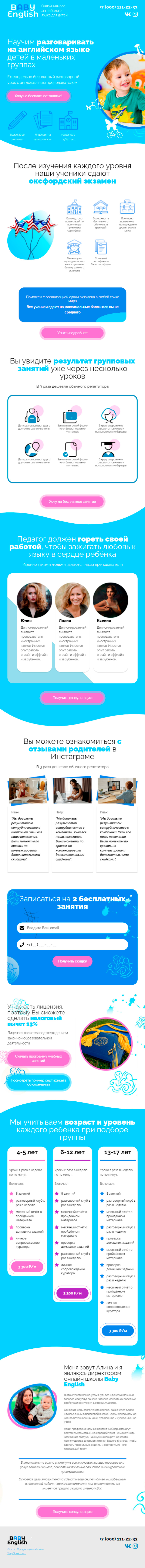 Закажите готовый продающий сайт лендинг #3172201 в Иркутске за 1-3 дня «под ключ»: свёрстан, отрисован и готов к рекламе. Тематика шаблона «Английский для детей».