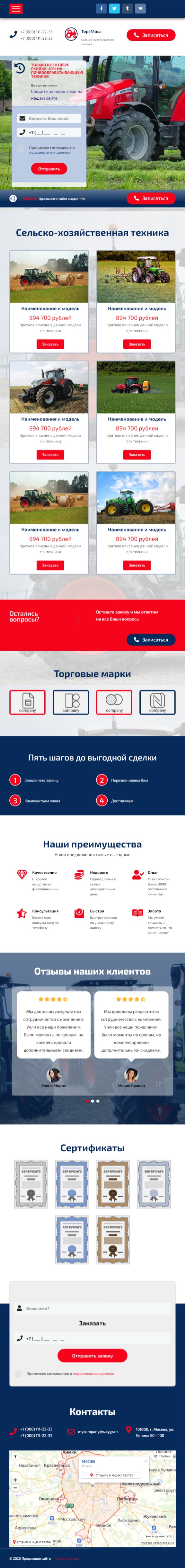 Закажите готовый продающий сайт лендинг #2553202 в Иркутске за 1-3 дня «под ключ»: свёрстан, отрисован и готов к рекламе. Тематика шаблона «Сельско-хозяйственная техника».