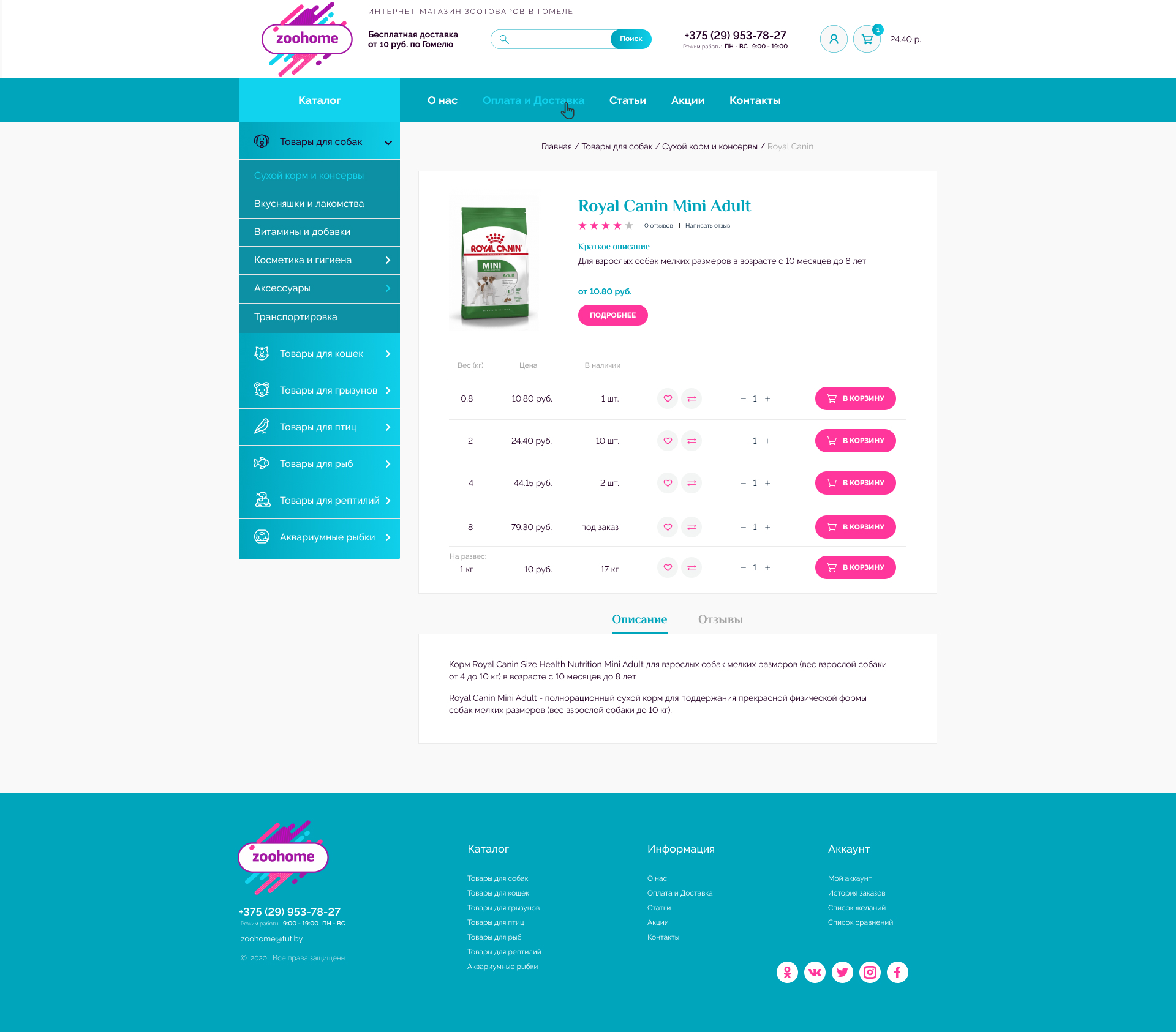 - Блок "Интернет-магазин Zoohome.by"