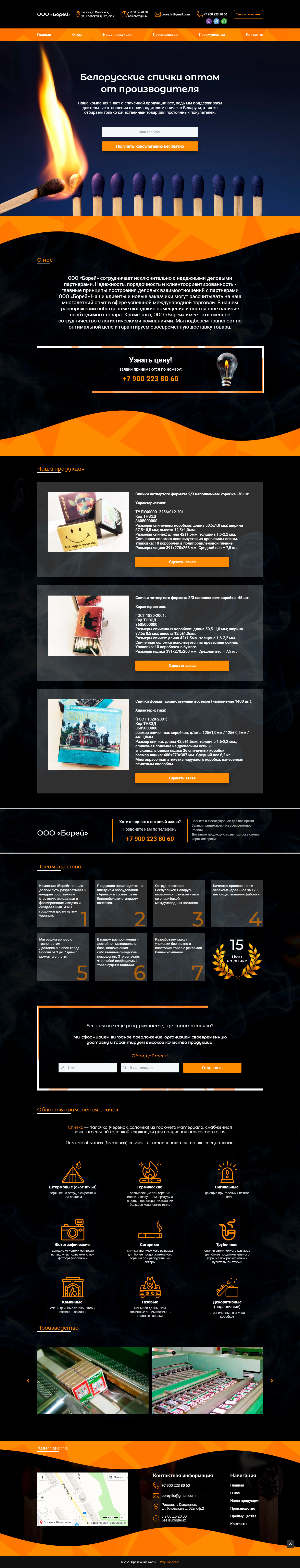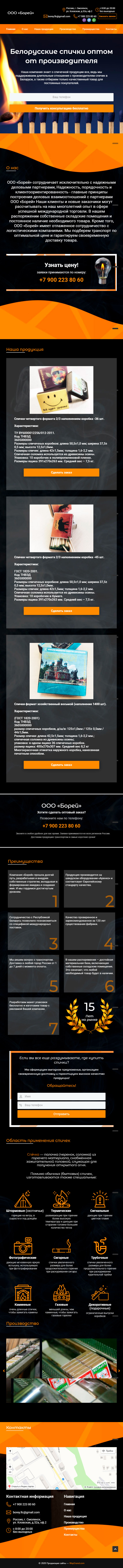 Закажите готовый продающий сайт лендинг #115 в Иркутске за 1-3 дня «под ключ»: свёрстан, отрисован и готов к рекламе. Тематика шаблона «Белорусские спички оптом от производителя».