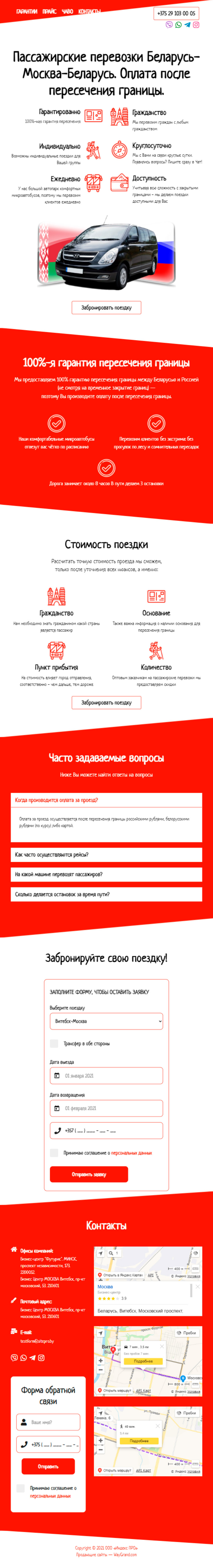 Закажите готовый продающий сайт лендинг #2528201 в Иркутске за 1-3 дня «под ключ»: свёрстан, отрисован и готов к рекламе. Тематика шаблона «Пассажирские перевозки Беларусь-Москва-Беларусь».
